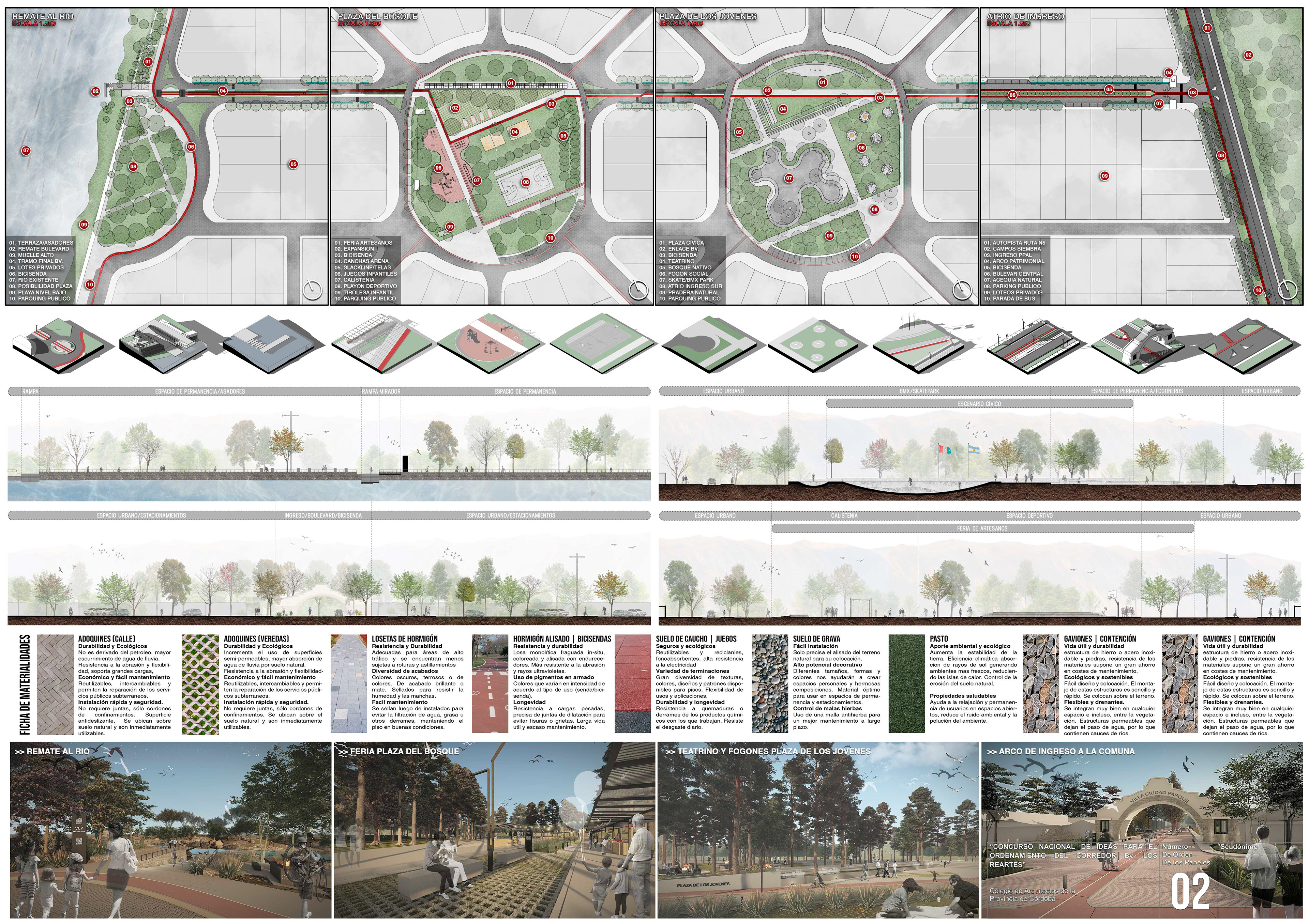 El Jurado destaca la visión del corredor como soporte paisajístico con una mirada multifuncional, sostenible y de gran síntesis proyectual.